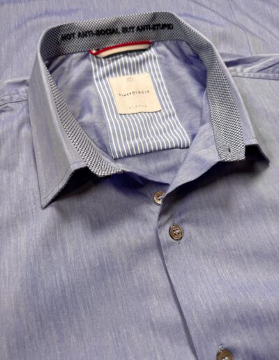 Une chemise bleue intemporelle au design épuré, pensée pour un style classique et percutant.