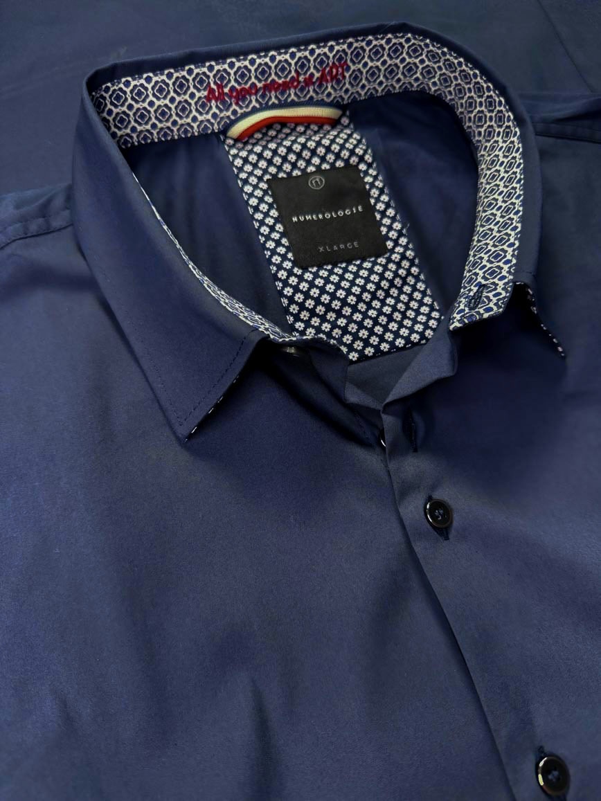 Une chemise marine intemporelle au design épuré, pensée pour un style classique et percutant.