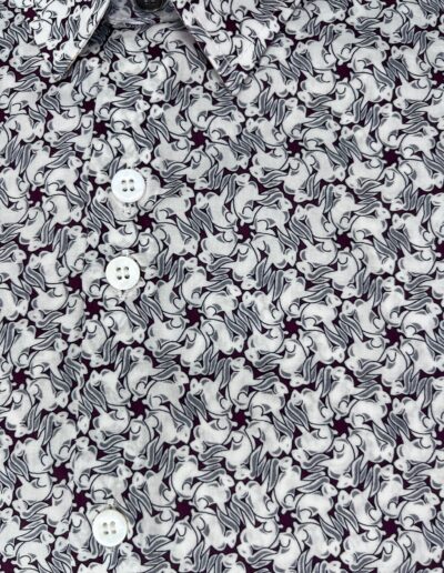 Une chemise à motif graphique blanc sur fond bordeaux, pensée pour un style qui allie confort et sophistication.