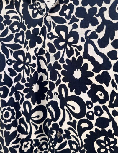 Une chemise à motif graphique marine sur fond écru, pensée pour un style qui allie confort et sophistication.