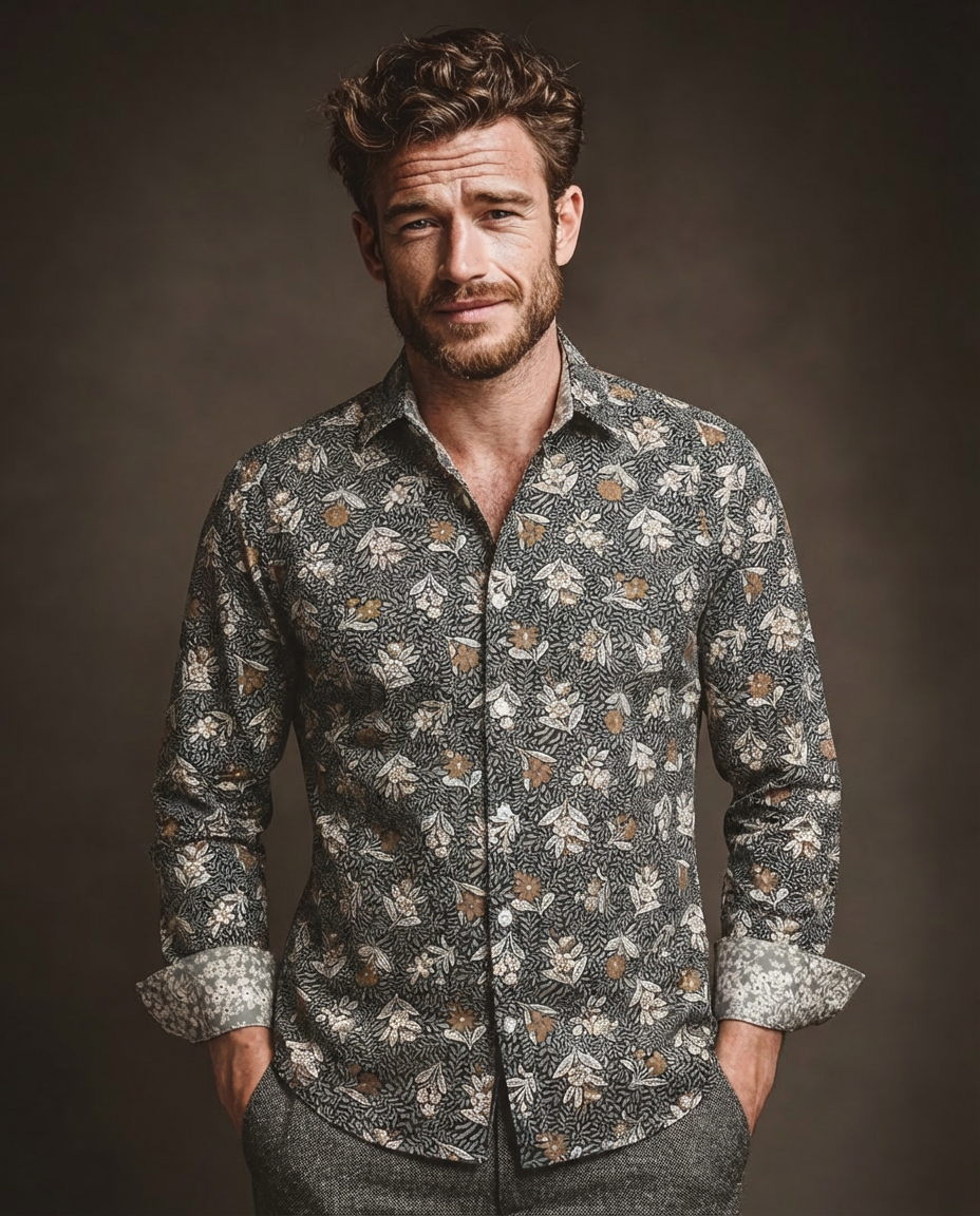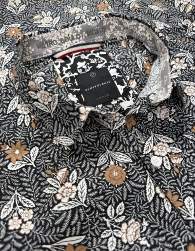 Une chemise à motif floral mukticolore sur fond noir, pensée pour un style qui allie confort et sophistication.
