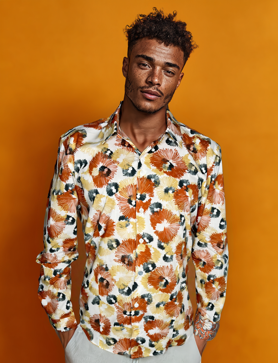 Une chemise à motif floral sur fond écru, pensée pour un style qui allie confort et sophistication.