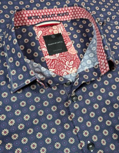 Une chemise à motif géométrique mukticolore sur fond violet, pensée pour un style qui allie confort et sophistication.
