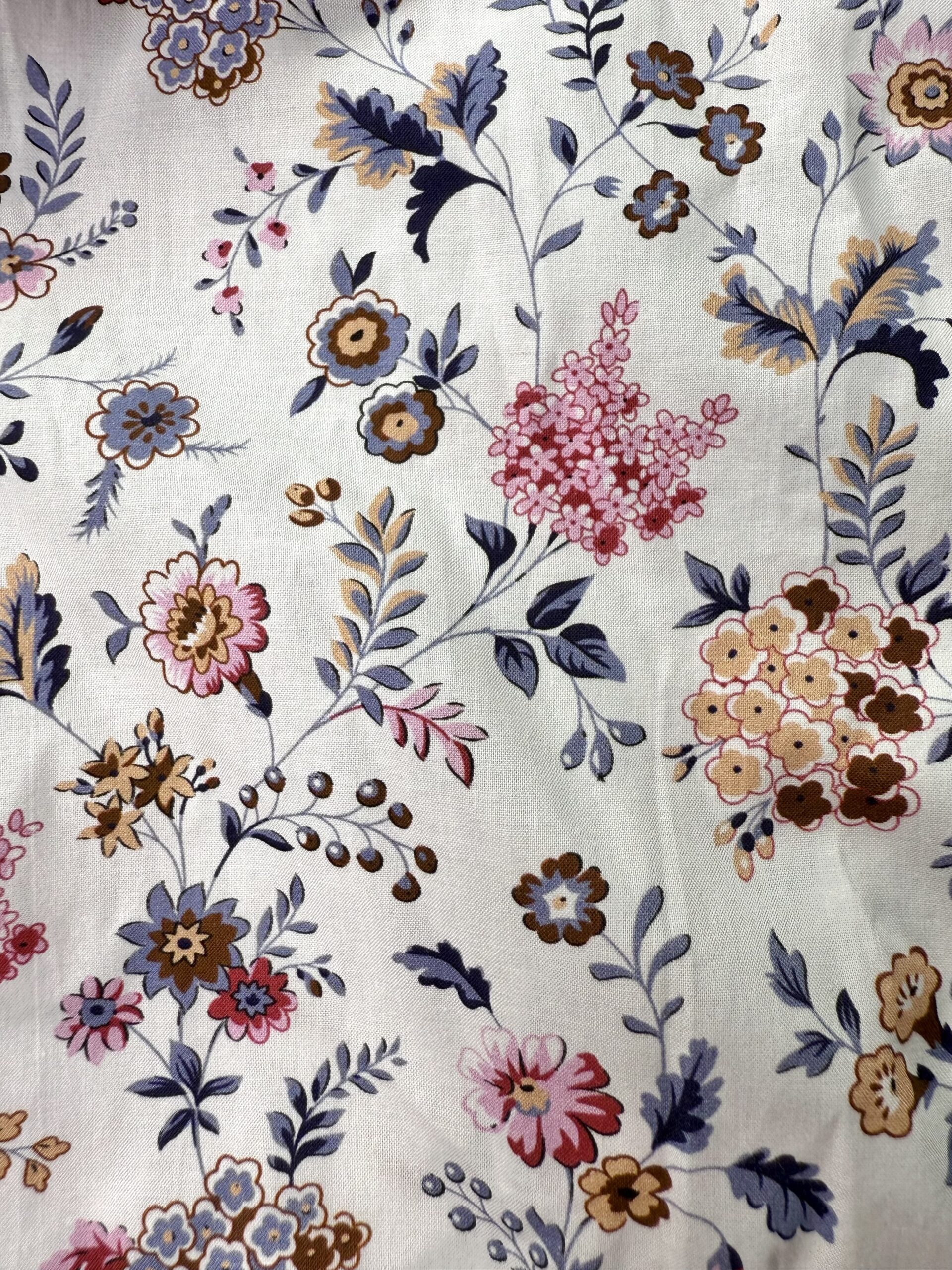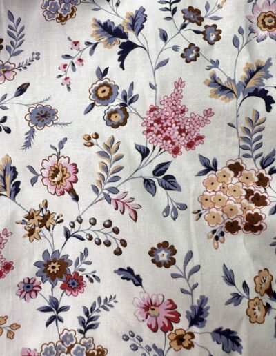 Chemise à motif floral multicolore sur fond écru – coton doux, broderie écru « La crème de la crème », coupe ajustée. Numérotation unique