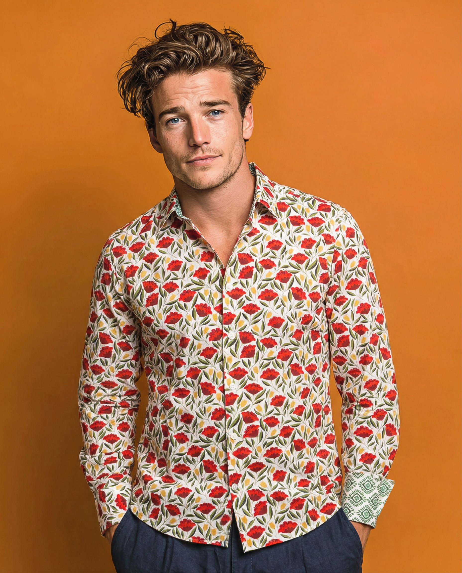 Une chemise à motif floral sur fond écru, pensée pour un style qui allie confort et sophistication.