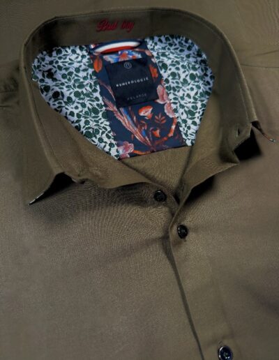 Une chemise kaki intemporelle au design épuré, pensée pour un style classique et percutant.