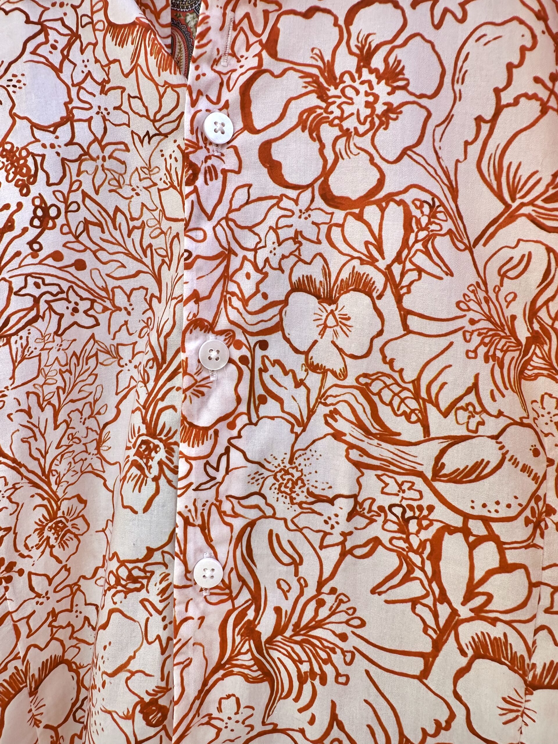 Une chemise à motif floral orange sur fond écru, pensée pour un style qui allie confort et sophistication.