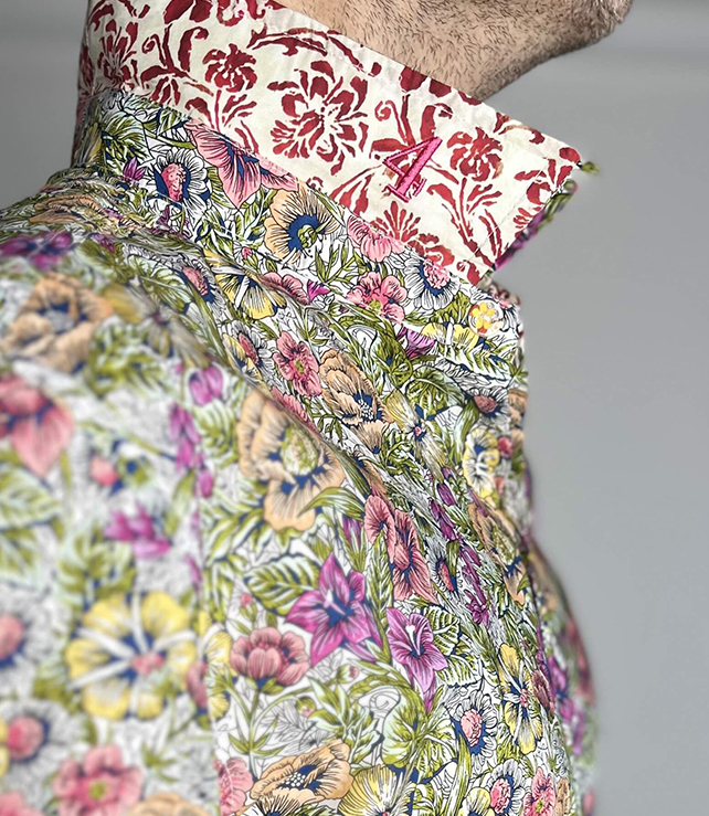 La bande de col intérieure, le sous-col et les intérieurs poignets sont réalisés dans un tissu différent