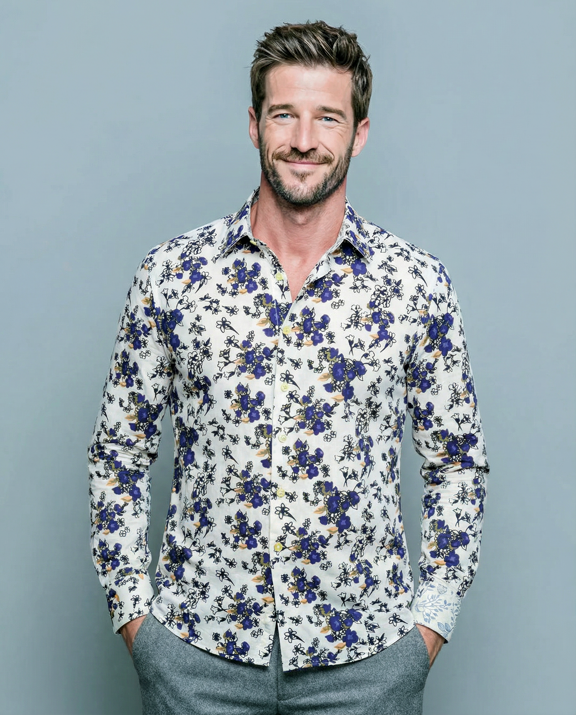 Une chemise à motif floral multicolor sur fond écru, pensée pour un style qui allie confort et sophistication.