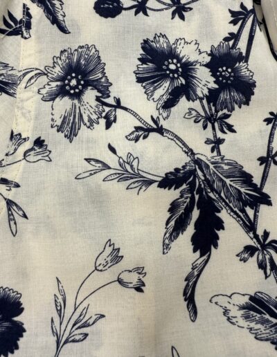 Chemise à motif floral bleu sur fond beige – coton doux, broderie marine « Lève toi et brille », coupe ajustée. Numérotation unique